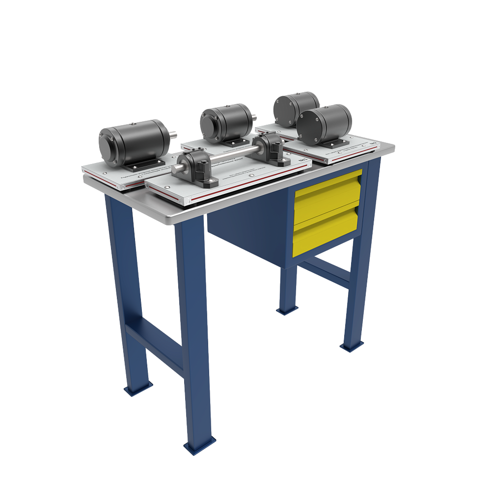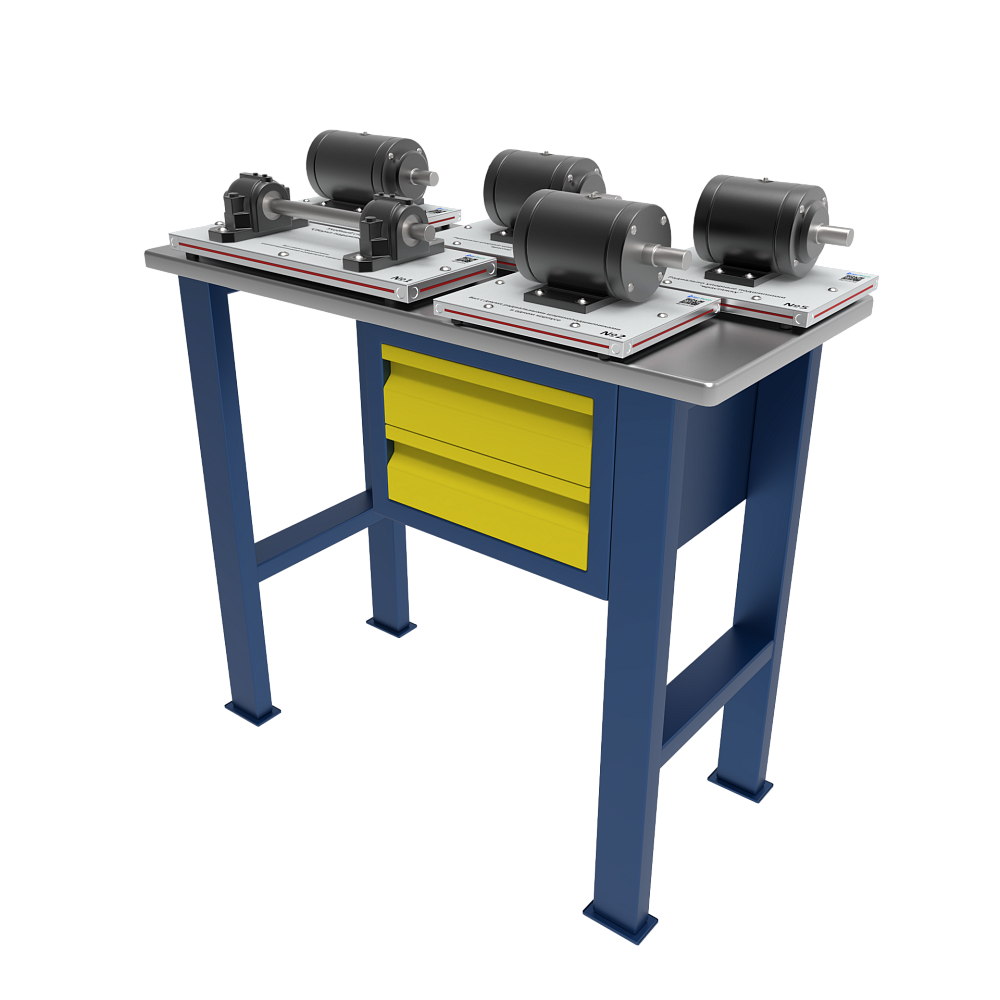 Сборки подшипников размещены на подставках, выполненных из конструкционного алюминиевого профиля, с верхней панелью из алюминия.