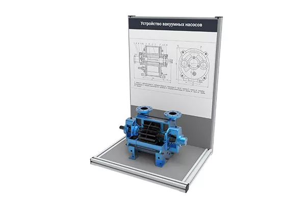Представляет собой планшет, с закрепленным на нем насосом в разрезе и текстовой информацией о конструктивных элементах. Планшет может быть размещен на столе или стене, с использованием специальных креплений, входящих в комплект поставки. В комплект входит методическое пособие с подробным описанием устройства, принципа работы и сфер применения представленного насосного агрегата.