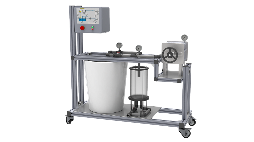 Стенд позволяет проводить экспериментальные работы по фильтрованию различных суспензий.