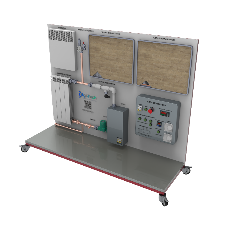 Учебный стенд «Действующая схема обвязки настенного котла с теплым полом при помощи коллектора»Подробнее
